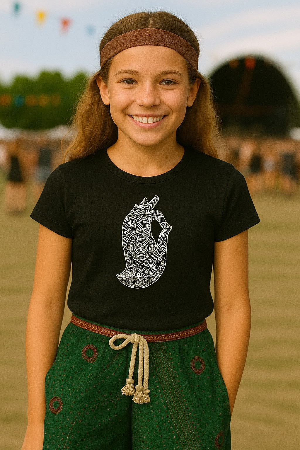 Bohotusk Kids Hand of Buddha Cotton T-Shirts for aged 3 to 13 years old (Chest size 26" to 36") - we also sell this design in our ladies slim fit sizes & Men’s Unisex fit.